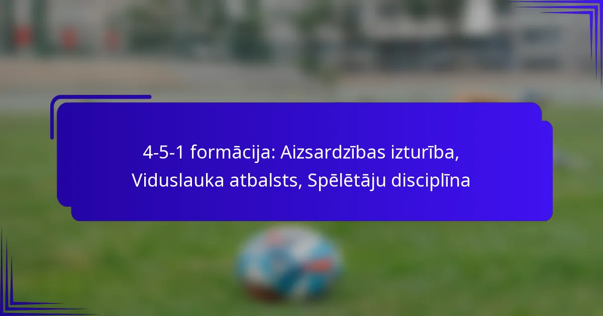 Spēlētāju disciplīna ir izšķiroša 4-5-1 formācijā, jo tā nodrošina, ka katrs spēlētājs ievēro savas specifiskās lomas, veicinot kopējo aizsardzības noturību un vidējās līnijas atbalstu. Disciplinēta komanda var saglabāt struktūru un efektīvi komunicēt, kas uzlabo sniegumu laukumā.